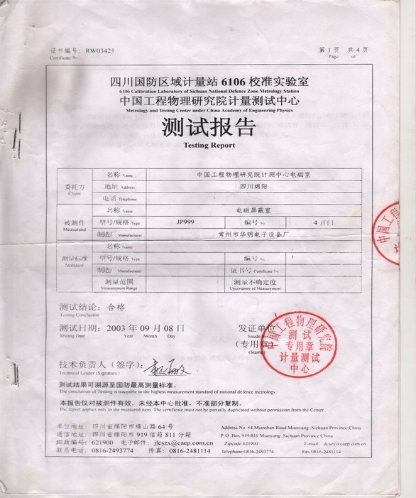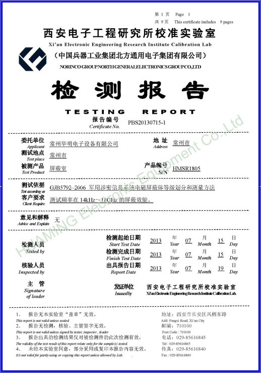我單位由一批具有豐富經驗,多年從事EMC領域工作的技術骨干組成,產品廣泛應用于國防軍工,大專院校,通訊產品研發生產等多個領域。產品技術參數符合國家相關規范要求。近年來,隨著通信信息技術的高速發展,我單位與國內外多家大專院校及科研機構緊密合作,不斷對產品進行改進提高,緊密跟蹤國內外電磁兼容領域最新發展動向,確保產品達到國際同類產品中的先進水平。產品先后通過了中國人民解放軍總參測試中心,中國計量院,上海市計量院,蘇州賽寶實驗室,中國工程物理研究院測試中心,英國N.J.Smith EMC評估工程服務測試中心,英國EMC Hire Limited,澳大利亞RFI-IND公司等國內外多家權威測試機構的檢測。